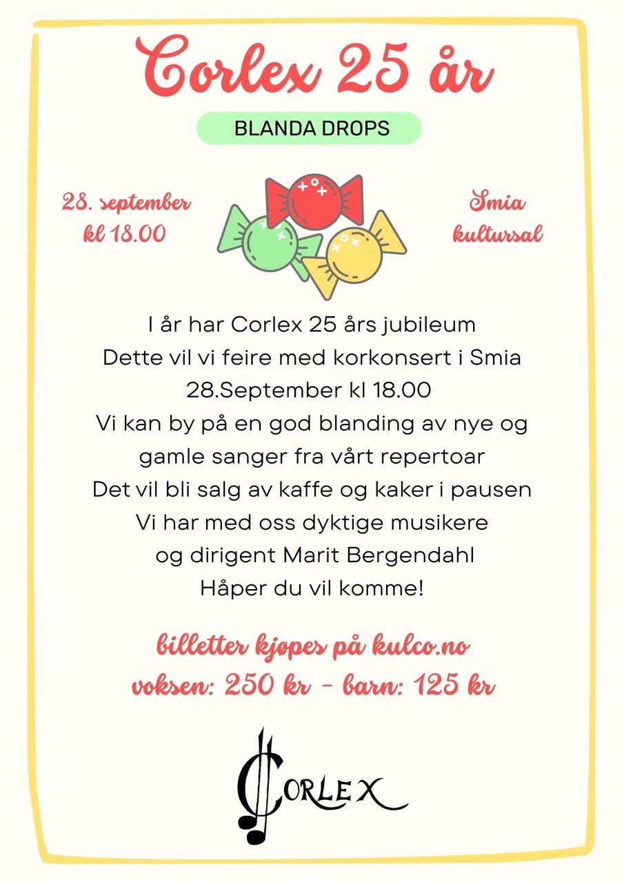 Søndag 28.09.25 ønsker vi velkommen til vår 25-års jubileumskonsert i SMIA. Billetter finner du påKulco